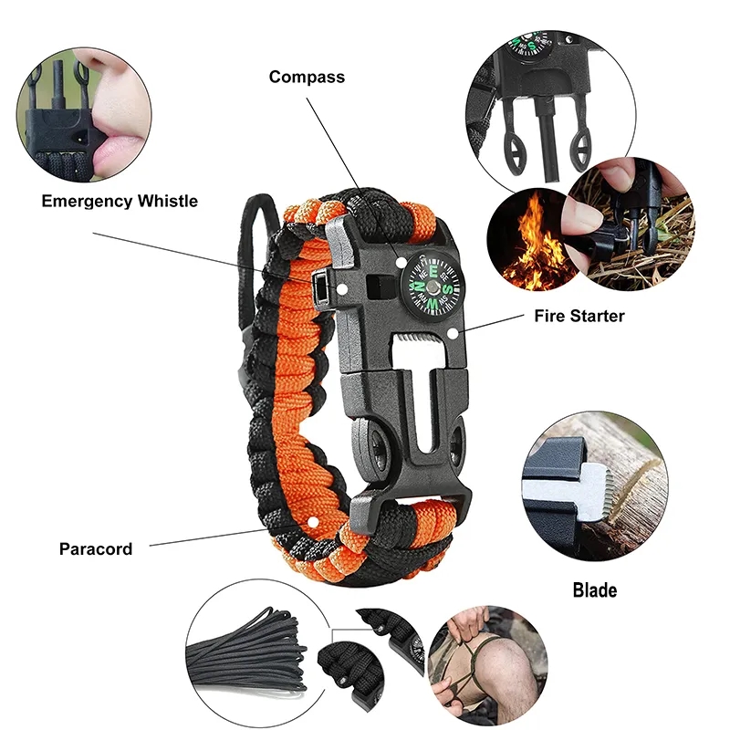 Additional InformationSurvival Bracelet with Fire Starter,Loud Whistle,Reliable Compass,Rope Cutter,Reliable Paracord