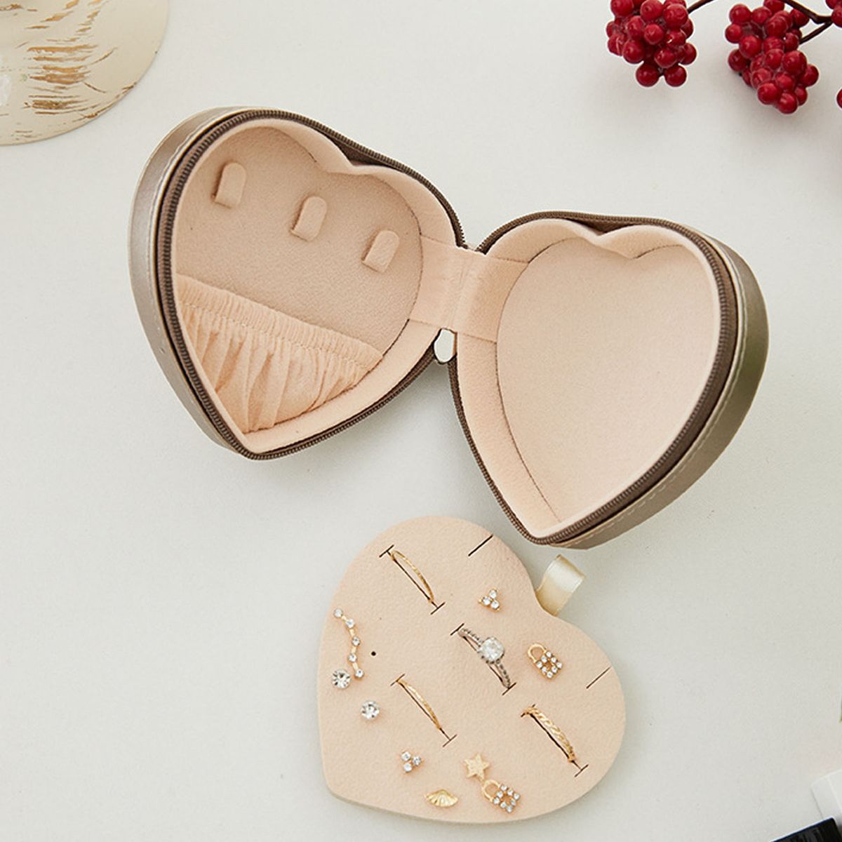 Compact Heart-Shaped Jewelry Box
